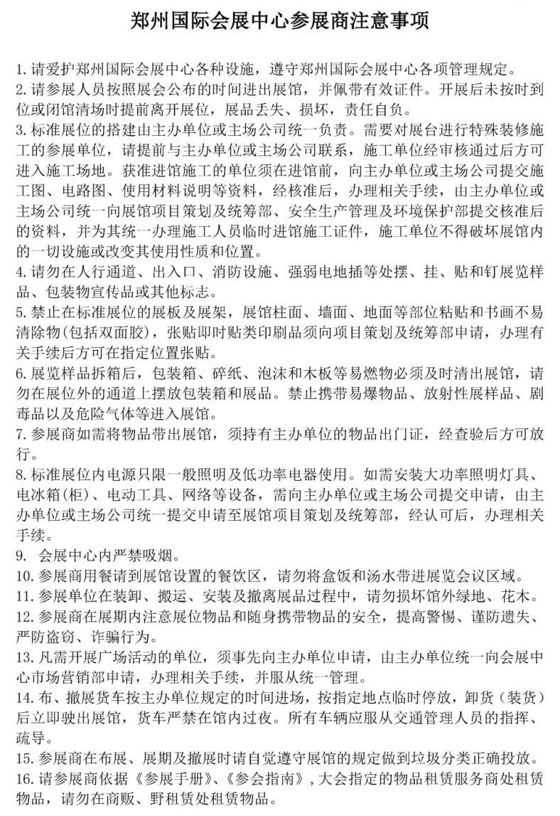 《鄭州國際會展中心參展商注意事項》文檔下載